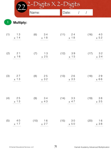 This is an advanced multiplication workbook that will help your young scholar master 2-digit numbers by 1 or 2-digit numbers and 3-digit numbers by 1 or 2-digit numbers.